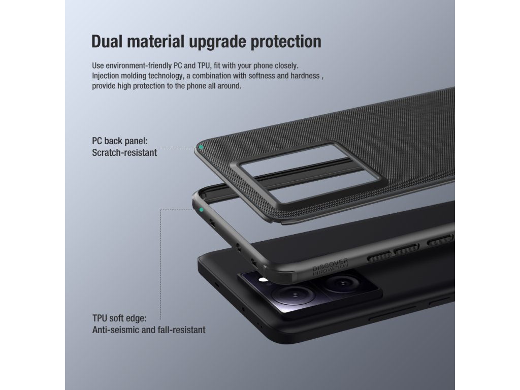 Skládá se z tvrdého a odolného plastu na zadní straně a TPU měkkého plastu na bocích.
