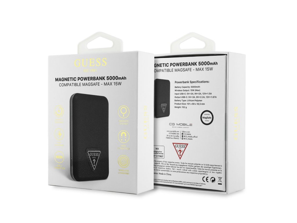 Guess PU Grained Triangle Logo kompaktní a stylová powerbanka s funkcí MagSafe je ideálním doplňkem pro váš iPhone a nezbytný společník na vašich cestách!Nabízí nejen elegantní design s texturou zrnité kůže a trojúhelníkovým logem, ale také praktické vlastnosti pro každodenní použití.