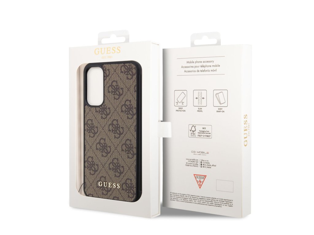Guess 4G Charms prémiový ochranný kryt telefonu v kombinaci zadní strany s PU kůží s motivem Guess, pružnými PU boky a atraktivním přívěskem.Boky krytu jsou pružné a skvěle chrání telefon při nechtěném pádu.