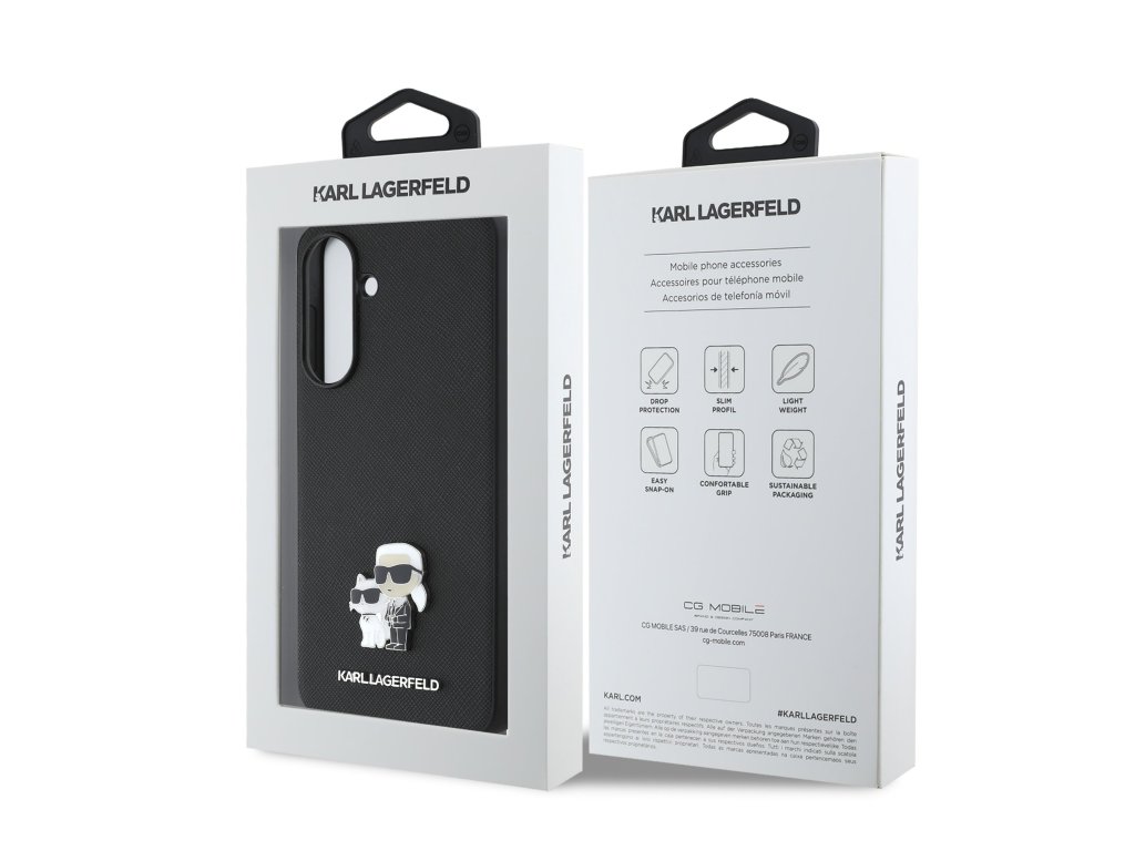 Karl Lagerfeld PU Saffiano Metal Karl and Choupette zadní kryt je dokonalý doplněk pro váš telefon i outfit, který kombinuje funkčnost a styl v jednom.Je vyrobený z lehké a odolné PU umělé kůže s jemným žilkováním a nabízí skvělou ochranu telefonu i pohodlí při používání.
