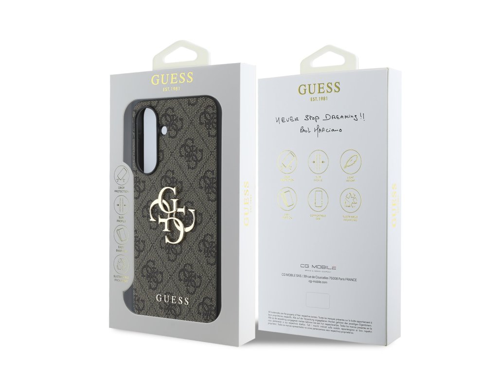 Prémiový zadní kryt Guess PU 4G Metal Logo se vyznačuje elegantním, charakteristickým 4G vzorem, doplněným o logo GUESS.Kryt je vyrobený z lehkého a odolného polyuretanu (PU) s povrchovou úpravou z PU kůže a nabízí tak nejen skvělou ochranu telefonu, ale také pohodlí při používání.
