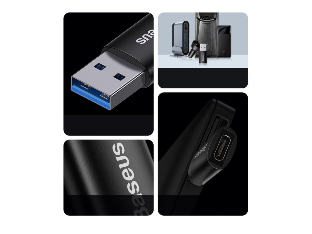 - Adaptér USB značky Baseus umožňuje přenášet data rychlostí až 10 Gb/s