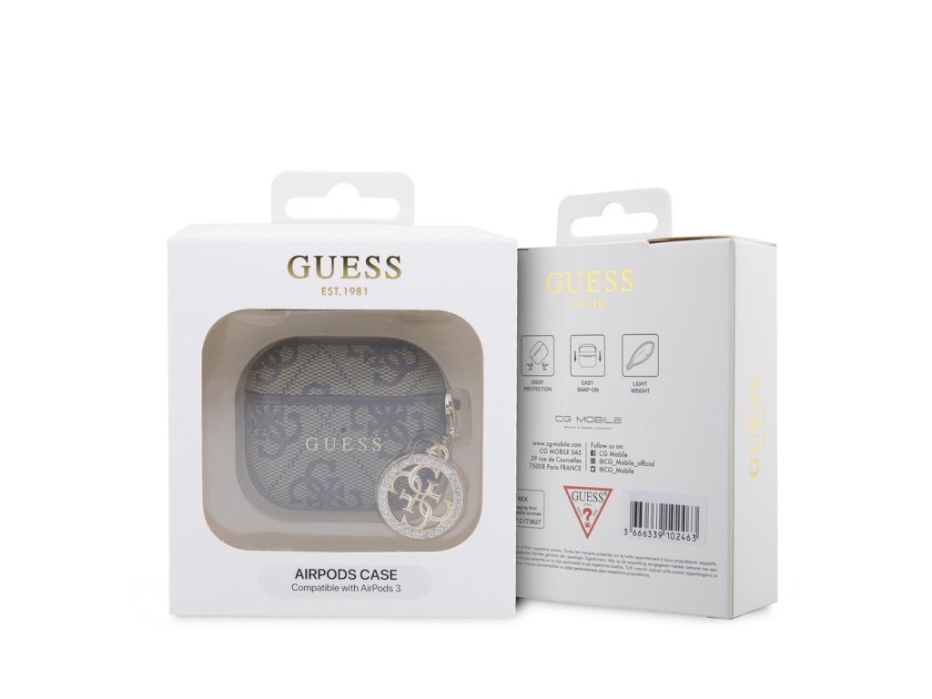 Guess 4G Script PC/PU Charm Pouzdro pro AirPods 3 Brown