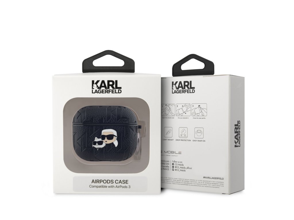 Karl Lagerfeld PU Embossed Karl and Choupette Heads Pouzdro pro AirPods 3 Black