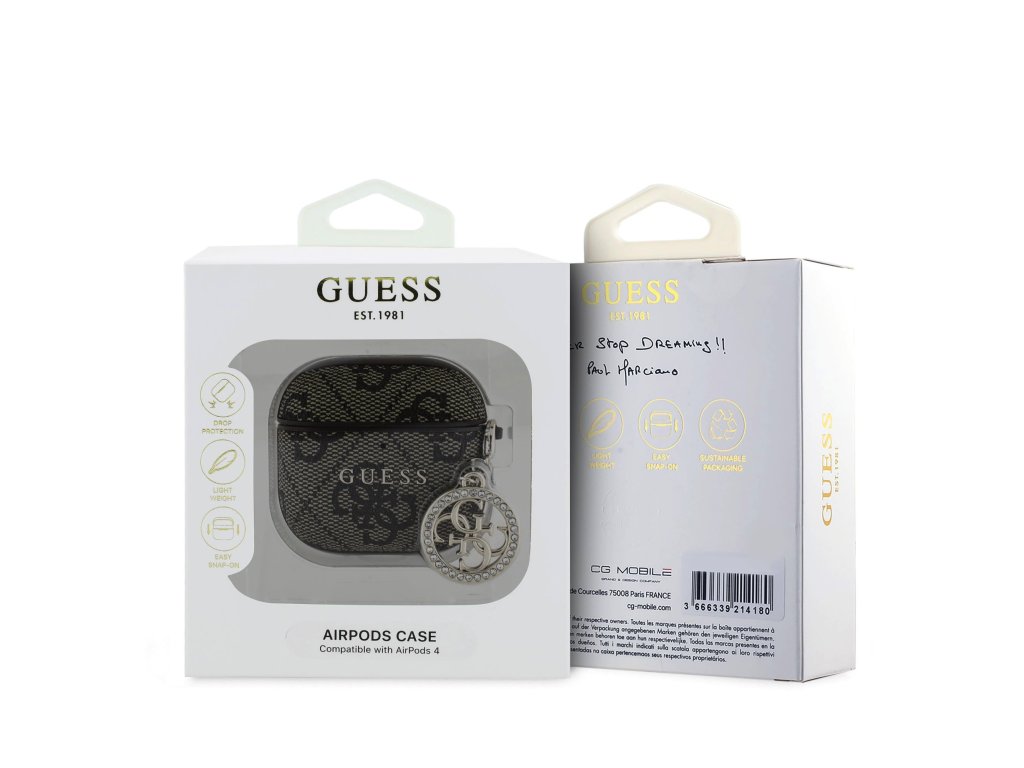 Guess 4G Script PC/PU Charm Pouzdro pro AirPods 4 Brown