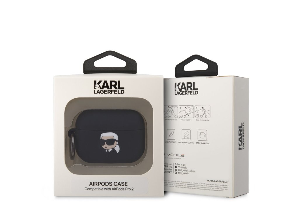Karl Lagerfeld 3D Logo NFT Karl Head Silikonové Pouzdro pro Airpods Pro 2 Black