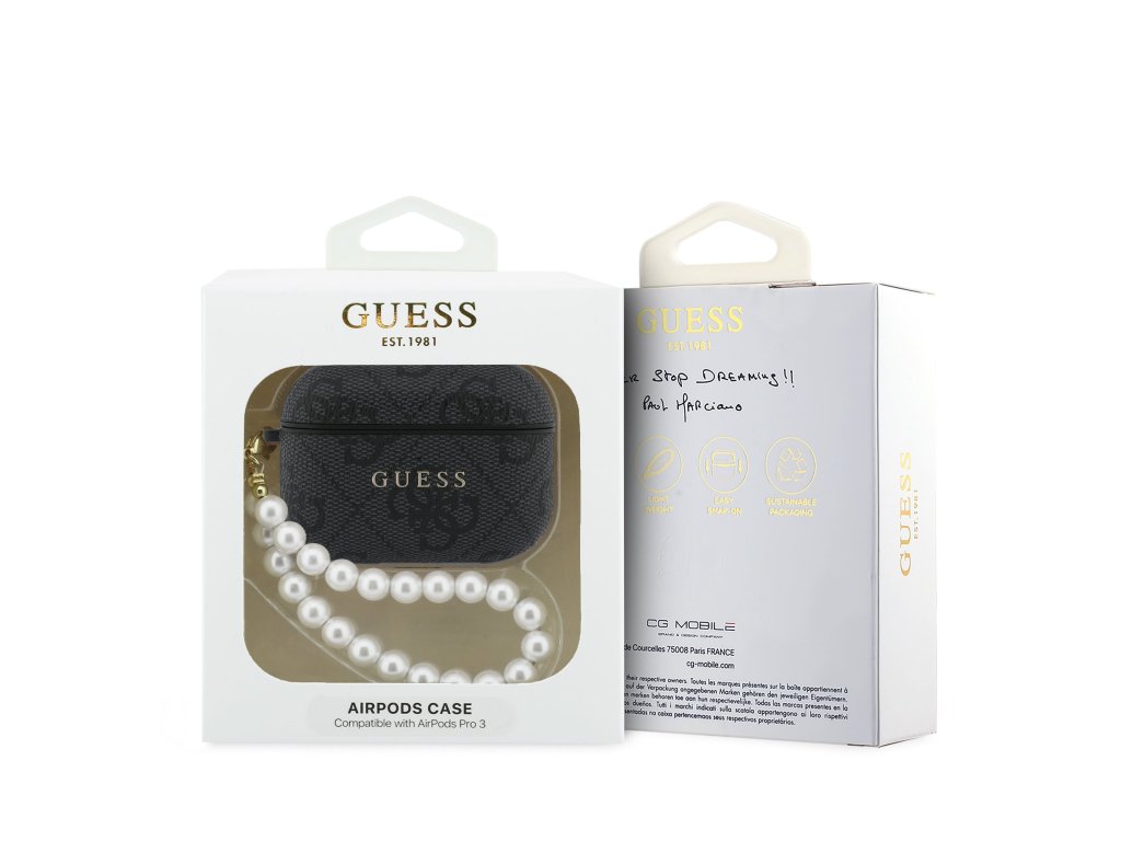 Guess PU 4G Classic Logo Pearl Strap Pouzdro pro AirPods Pro 3 Black