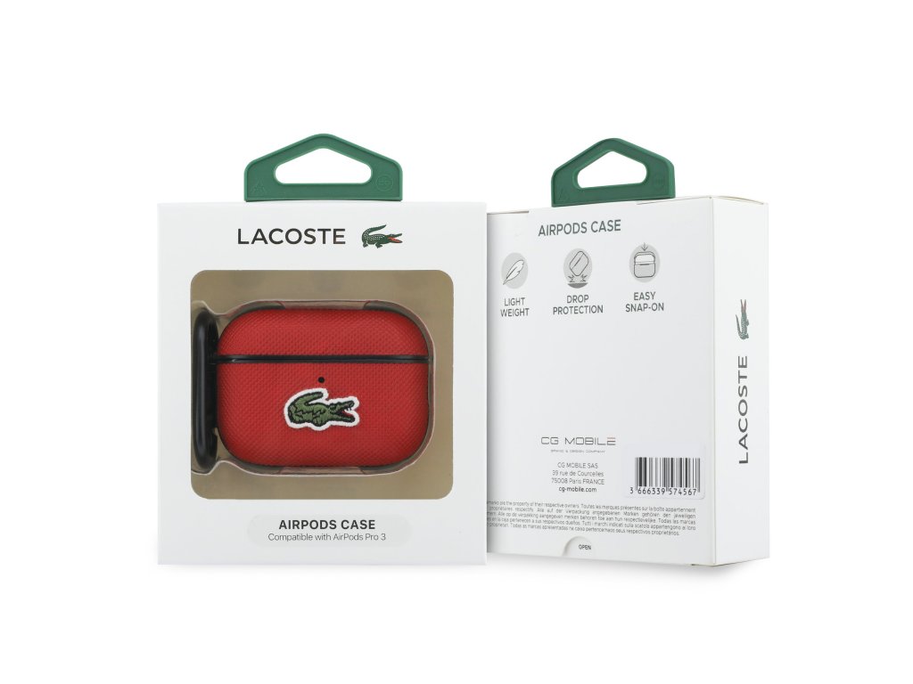 Lacoste Petit Pique Croc Logo Patch Pouzdro pro AirPods Pro 3 Red