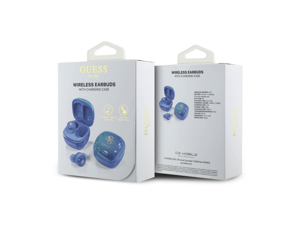 • Dlouhá výdrž baterie: Sluchátka Guess vám poskytují až 24 hodin poslechu na jedno nabití.