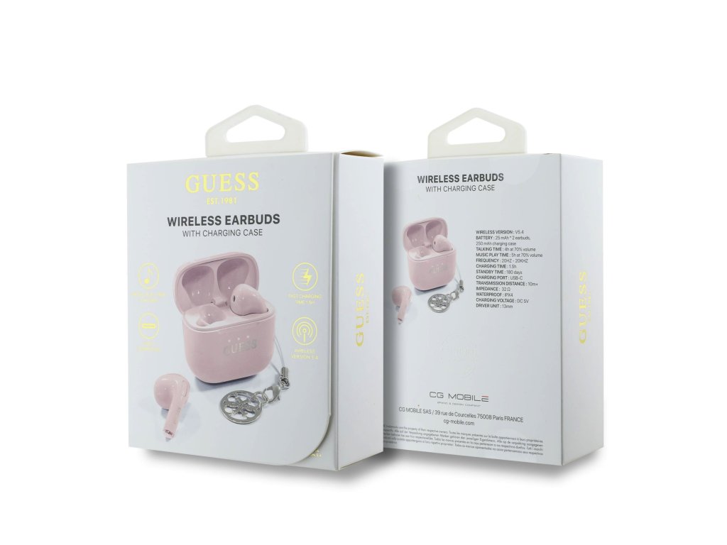 Guess Classic Logo Charm TWS Bezdrátová Sluchátka Pink