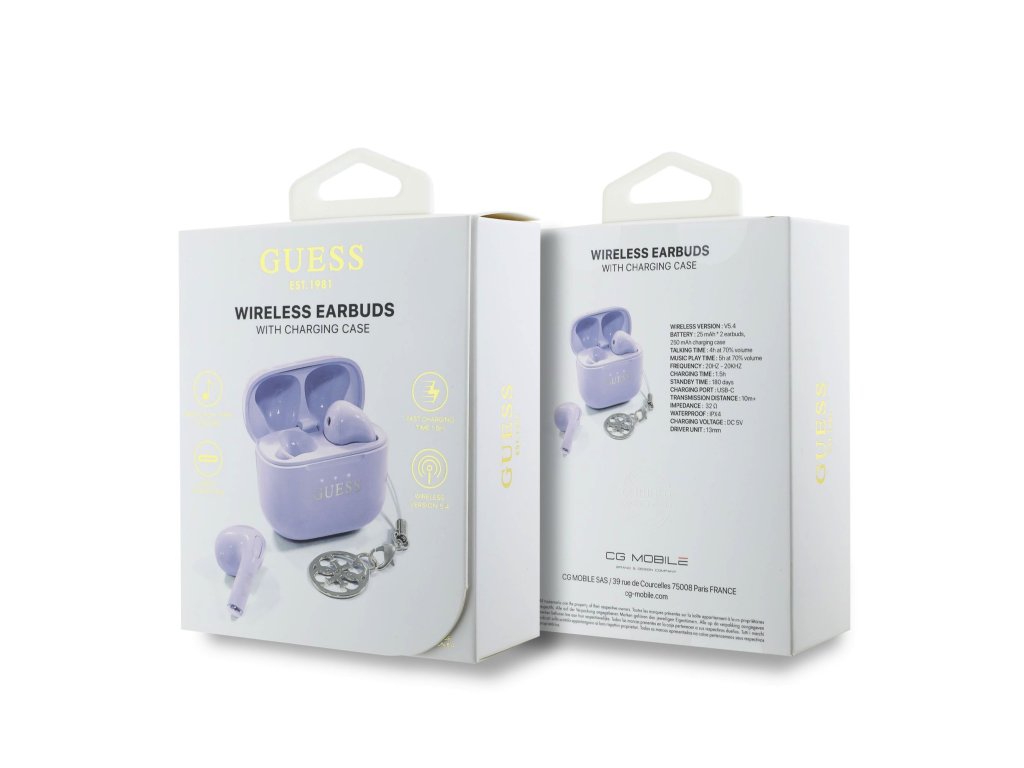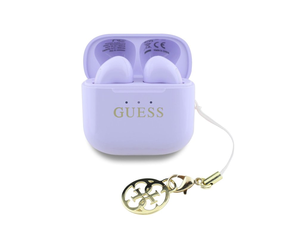 Guess Classic Logo Charm TWS Bezdrátová Sluchátka Purple