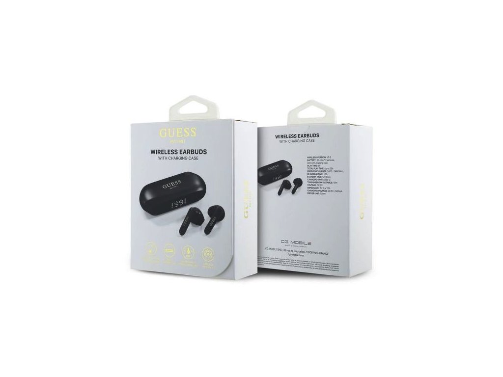 • Stylové nabíjecí pouzdro: Elegantní nabíjecí pouzdro s logem Guess nejen chrání sluchátka, ale také je udržuje plně nabitá. Pouzdro je kompaktní a snadno se vejde do kapsy nebo tašky.
