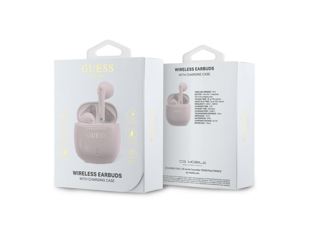 Guess Printed Classic Logo TWS Bezdrátová Sluchátka Pink