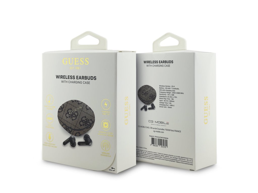 • Stylové nabíjecí pouzdro: Elegantní nabíjecí pouzdro s logem Guess nejen chrání sluchátka, ale také je udržuje plně nabitá. Pouzdro je kompaktní a snadno se vejde do kapsy nebo tašky.