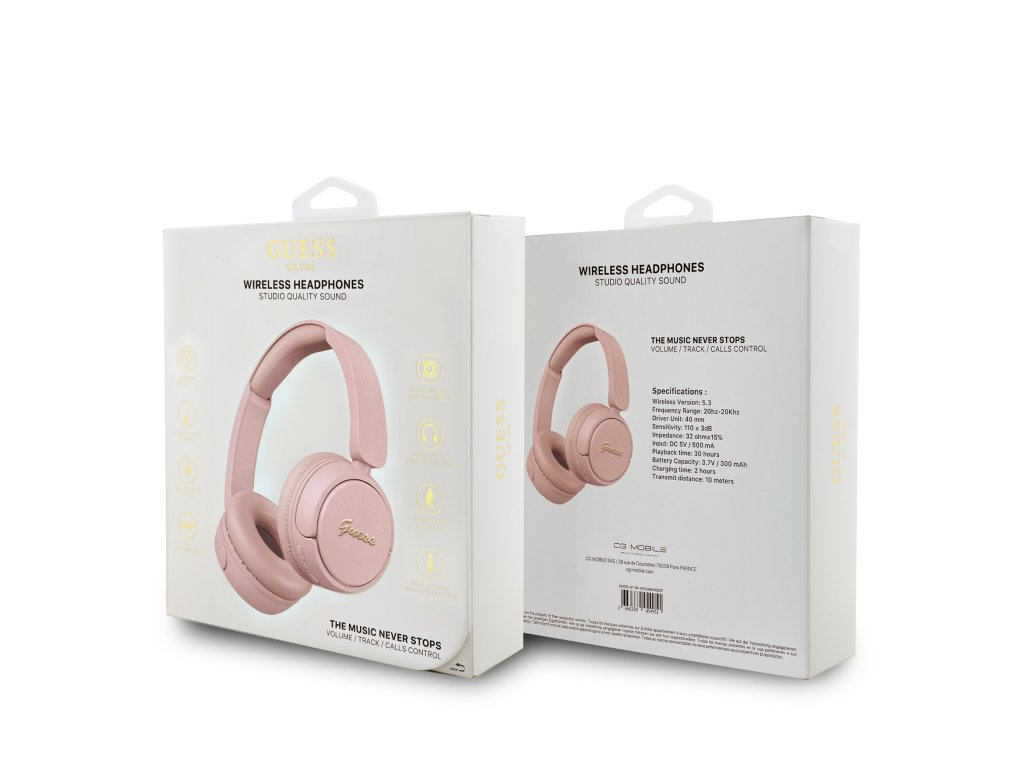 Guess Script Metal Logo Bezdrátová Sluchátka Pink