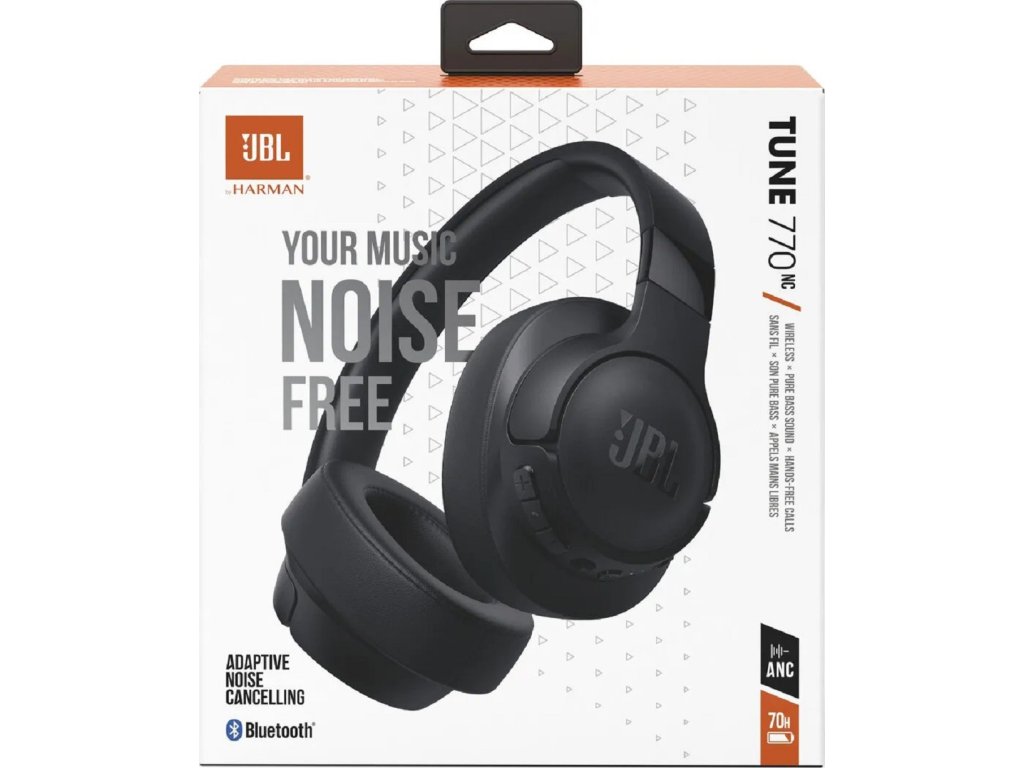 Bezdrátová sluchátka JBL Tune 770NC pro každodenní zábavu.Zvuk JBL Pure Bass