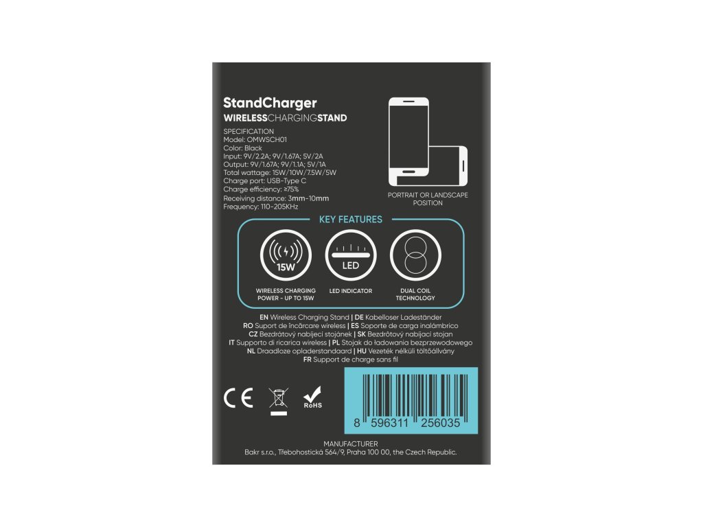 OBAL:ME StandCharger Bezdrátový Nabíjecí Stojánek na Stůl 15W Black