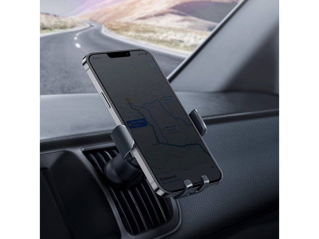 Držák na mobil Baseus Metal Age II Gravity držák telefonu do mřížky ventilace s uchycením telefonu pomocí Gravity systému.Pevný gravitační držák snadno namontujete do ventilačního otvoru téměř každého auta a díky své poloze neomezuje viditelnost při řízení.