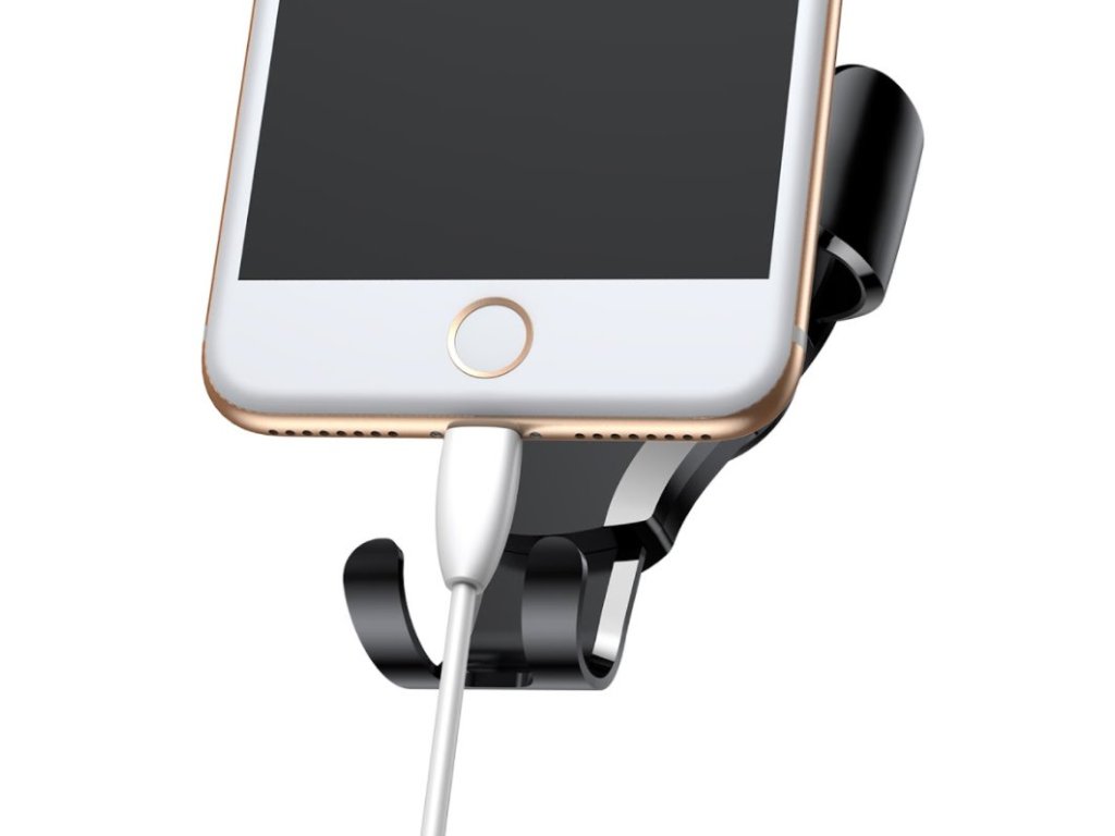 Uchycení telefonu obstará gravitace, telefon se vlastní hmotností uchytí a boční držáky se pevně sepnou.