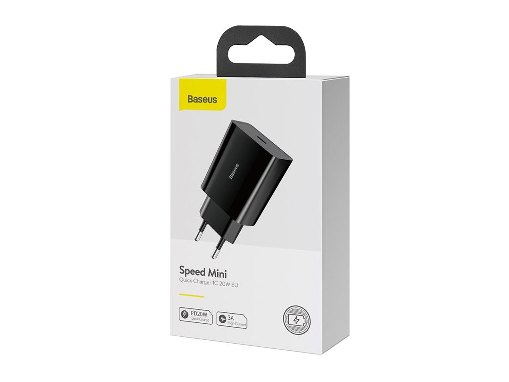 Baseus Speed Mini síťová nabíječka s jedním USB-C portem a nabíjecím výkonem až 20WNabíječka slouží ke kvalitnímu a rychlému nabíjení všech zařízení vybavených USB portem např. mobilní telefony, tablety.