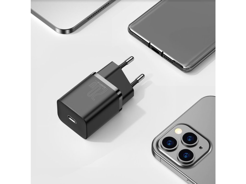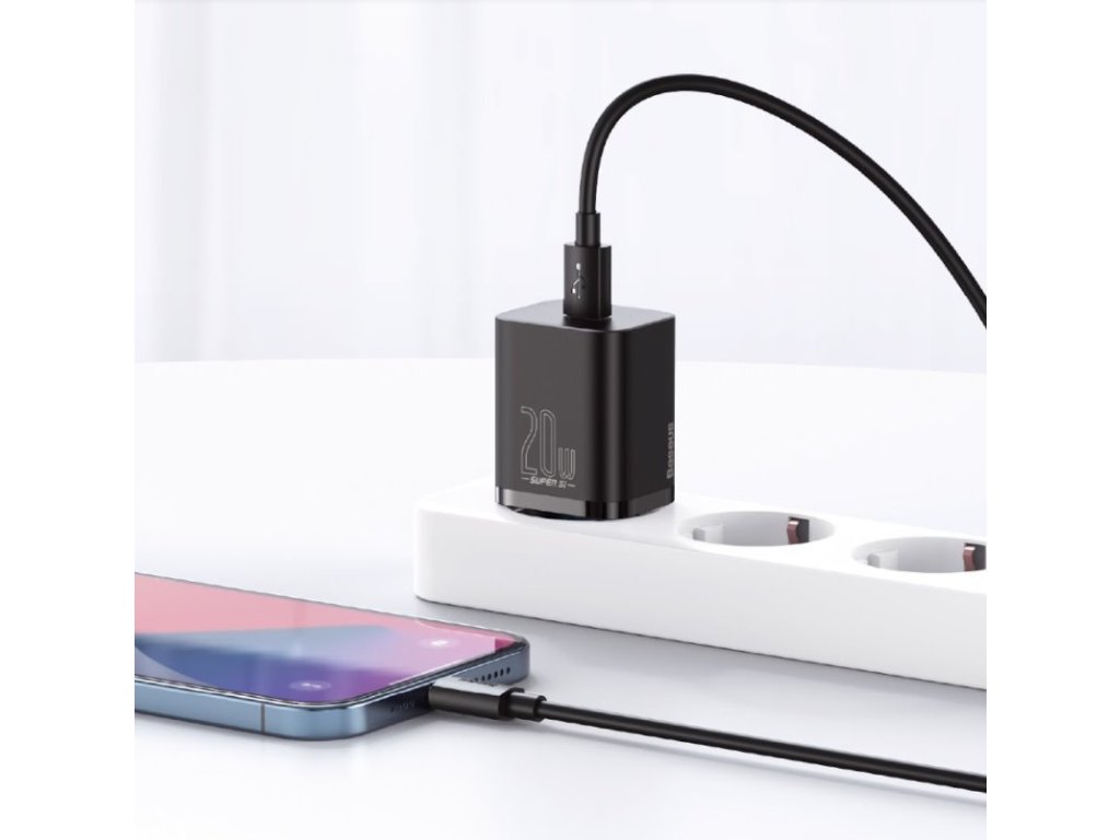 Baseus Super Si Quick kompaktní a designově velmi povedená nabíječka s jedním USB-C výstupem a výkonem 20WNabíječka podporuje nabíjení napětí 5V, 9V, 12V a 15V