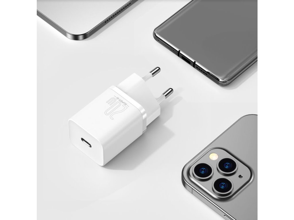 Baseus Super Si Quick kompaktní a designově velmi povedená nabíječka s jedním USB-C výstupem a výkonem 20WNabíječka podporuje nabíjení napětí 5V, 9V, 12V a 15V