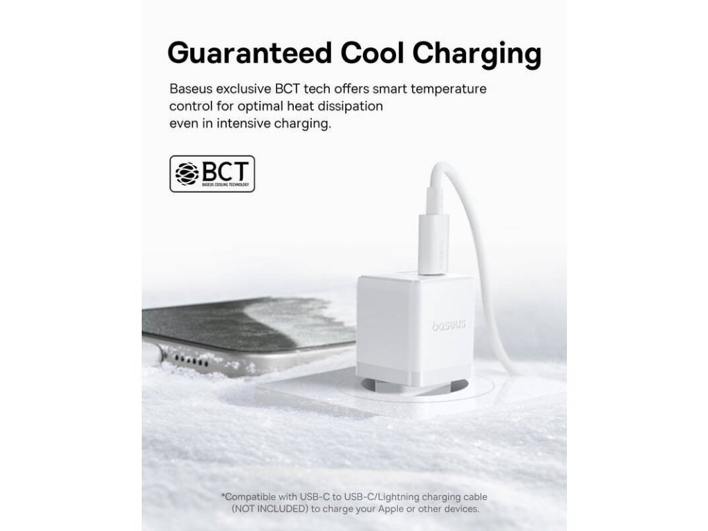 Nabíječka je vybavena technologií Baseus Cooling Technology, která inteligentně řídí teplotu a odvádí teplo i během náročného nabíjení.