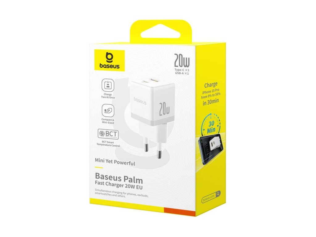 Baseus Palm 20W – Kompaktní nabíječka s USB-C i USB-ANabíječka je ideální nabíječka pro každodenní použití doma, v kanceláři i na cestách.