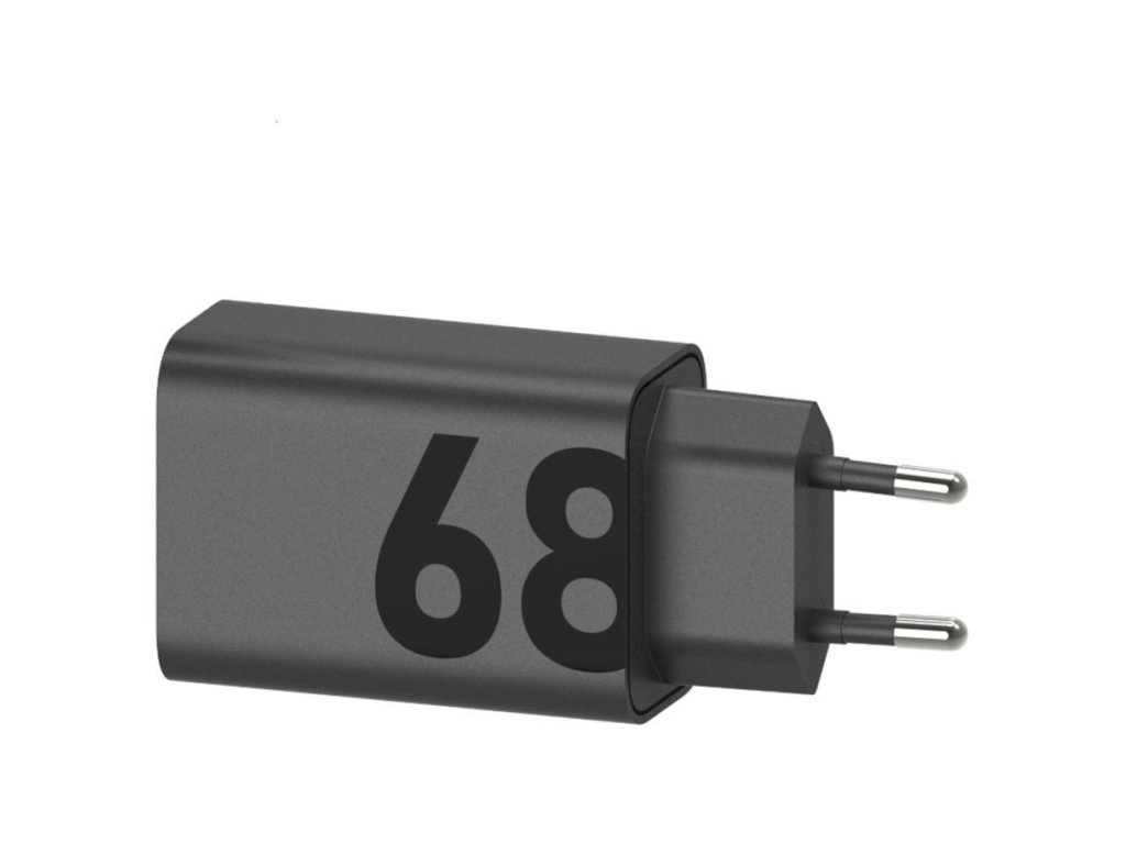 Cestovní síťová nabíječka s výkonem 68W a výstupem USB-C vč. USB-C/USB-C kabelem dlouhým 1m.Nabíječka je vhodná pro všechna zařízení a lze s ní nabíjet telefony a tablety všech značek.
