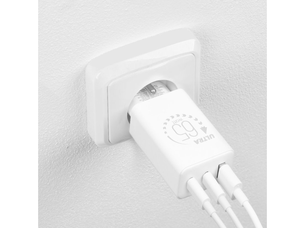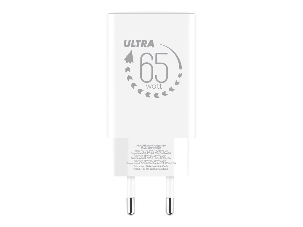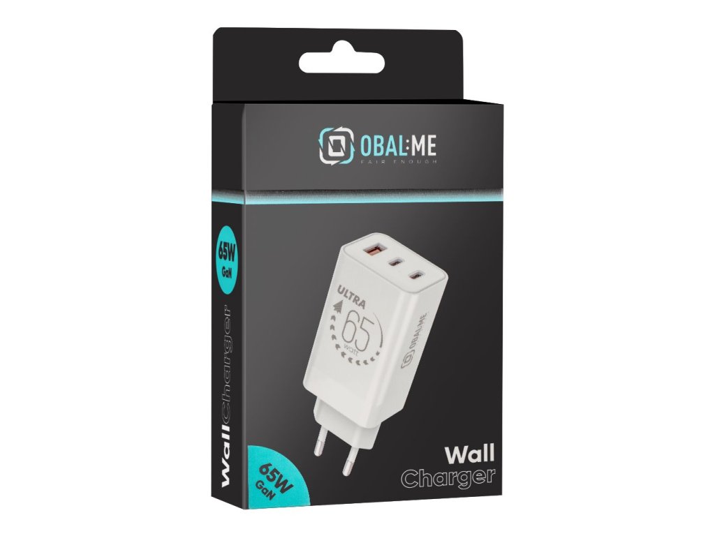 OBAL:ME GaN Cestovní Nabíječka USB-A + 2xUSB-C 65W White (Pošk. Balení)