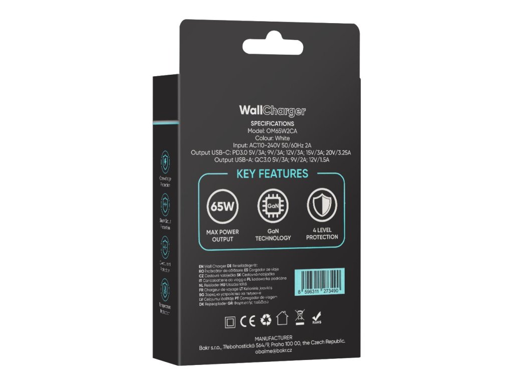 OBAL:ME GaN cestovní nabíječka s maximální podporou až 65W je výkonný a elegantní pomocník, který zvládne nabíjet telefon, tablet, sluchátka i notebook – a to všechno najednou. Díky technologii GaN (nitrid galia) nabízí extrémní výkon.Navržená pro dnešní životní tempo: rychlá, spolehlivá a kompaktní. Perfektní volba do práce, na cesty i domů.