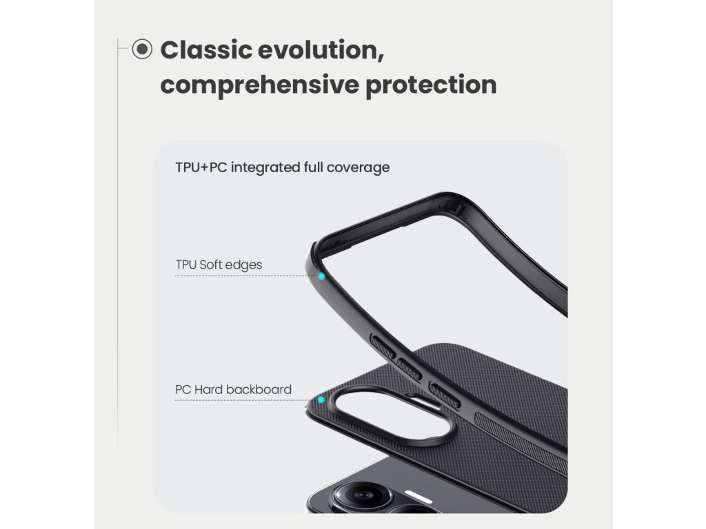 Skládá se z tvrdého a odolného plastu na zadní straně a TPU měkkého plastu na bocích.