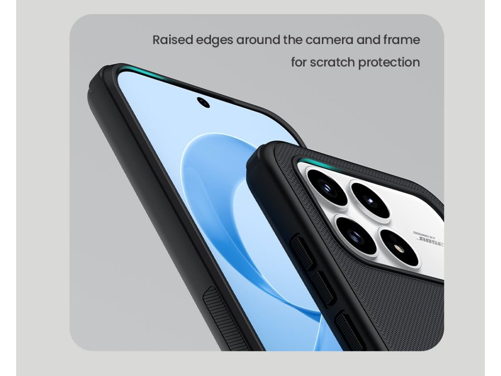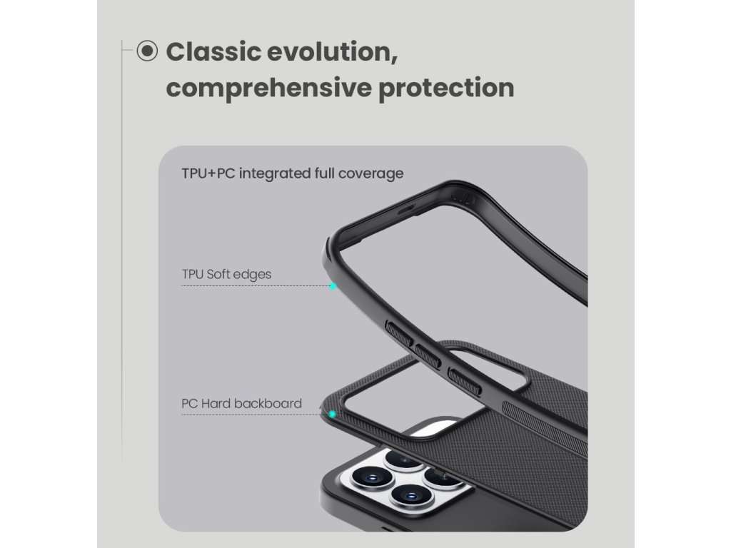 Skládá se z tvrdého a odolného plastu na zadní straně a TPU měkkého plastu na bocích.