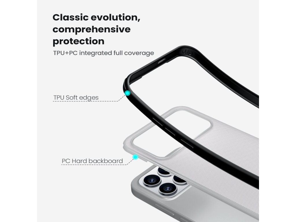 Skládá se z tvrdého a odolného plastu na zadní straně a TPU měkkého plastu na bocích.