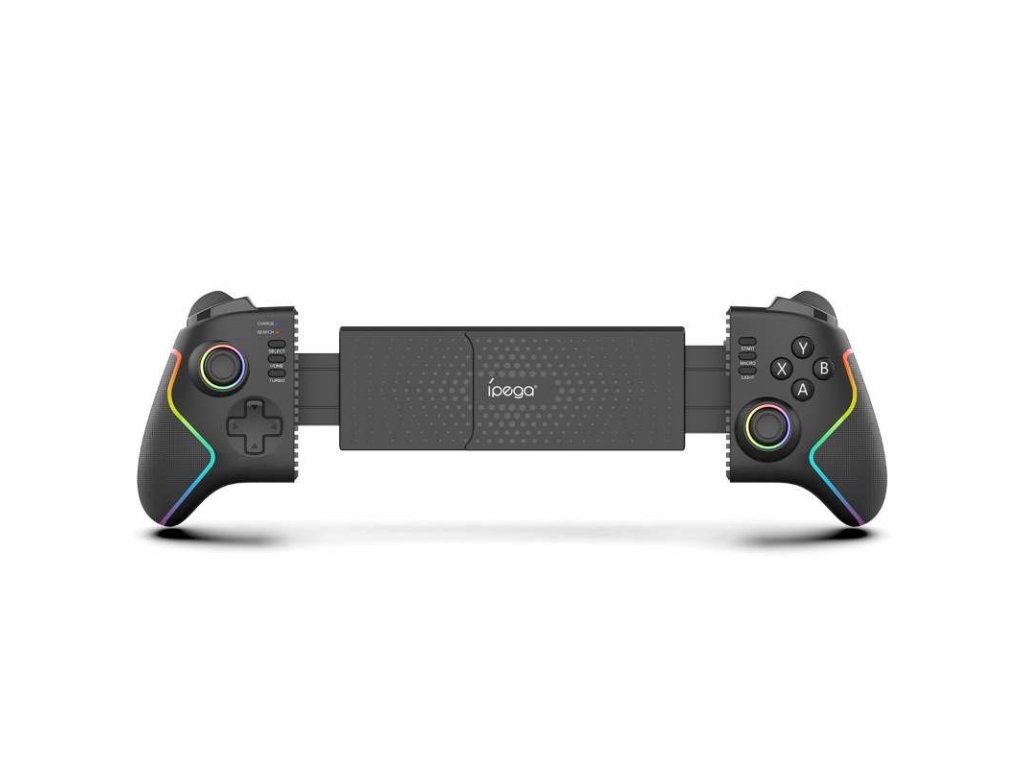 Konstrukce typu stretching umožňuje pohodlné uchycení mobilního telefonu, zatímco nastavitelné RGB podsvícení dodává ovladači stylový herní vzhled.
