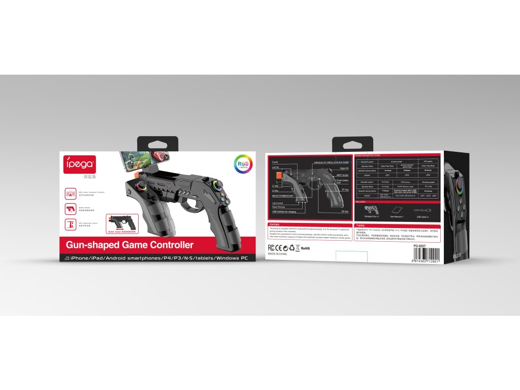 Posuňte své hraní na vyšší úroveň.Herní ovladač iPega PG-9257 ve tvaru pistole přináší realistický zážitek ze stříleček napříč platformami.