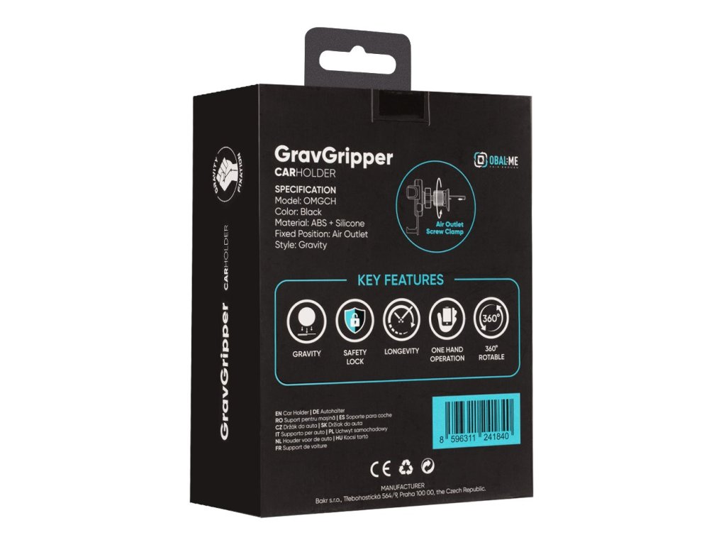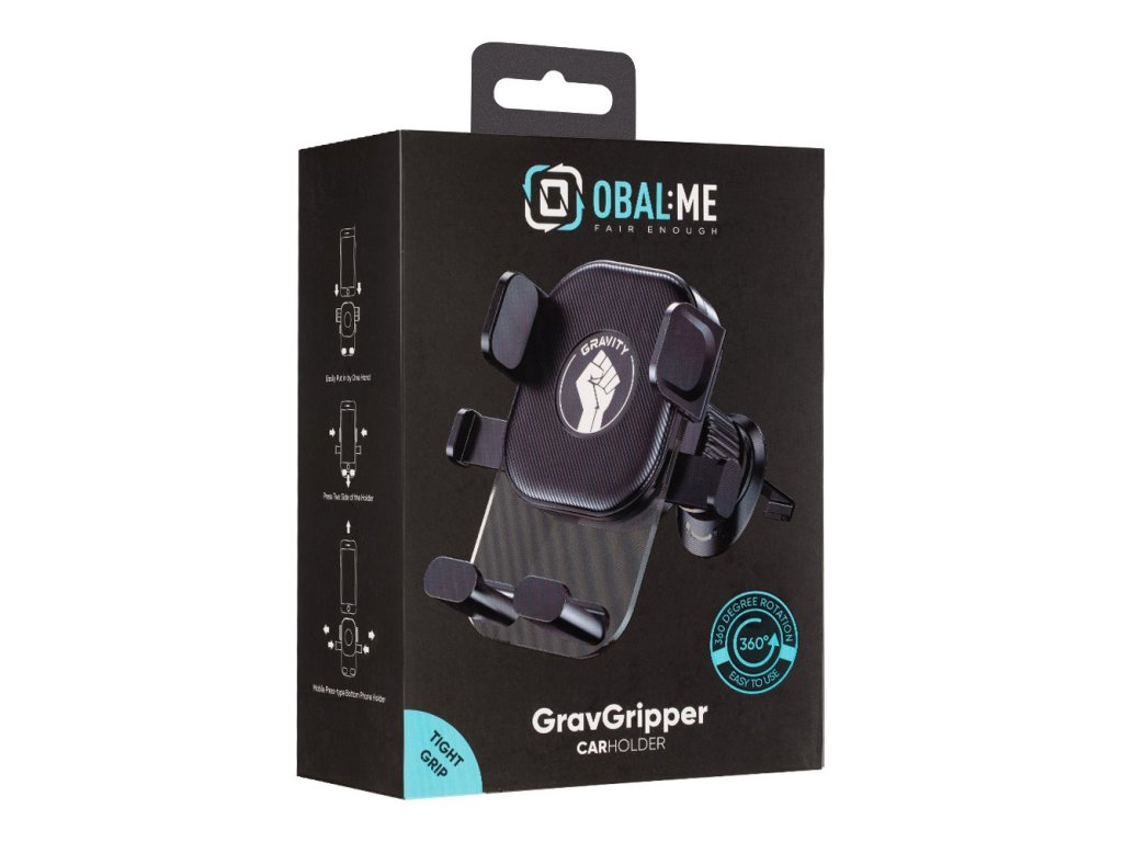 OBAL:ME GravGripper držák do auta se skvěle přizpůsobí všem velikostí mobilních telefonů.Gravitační způsob se vyznačuje snadným a rychlým uchycení telefonu.