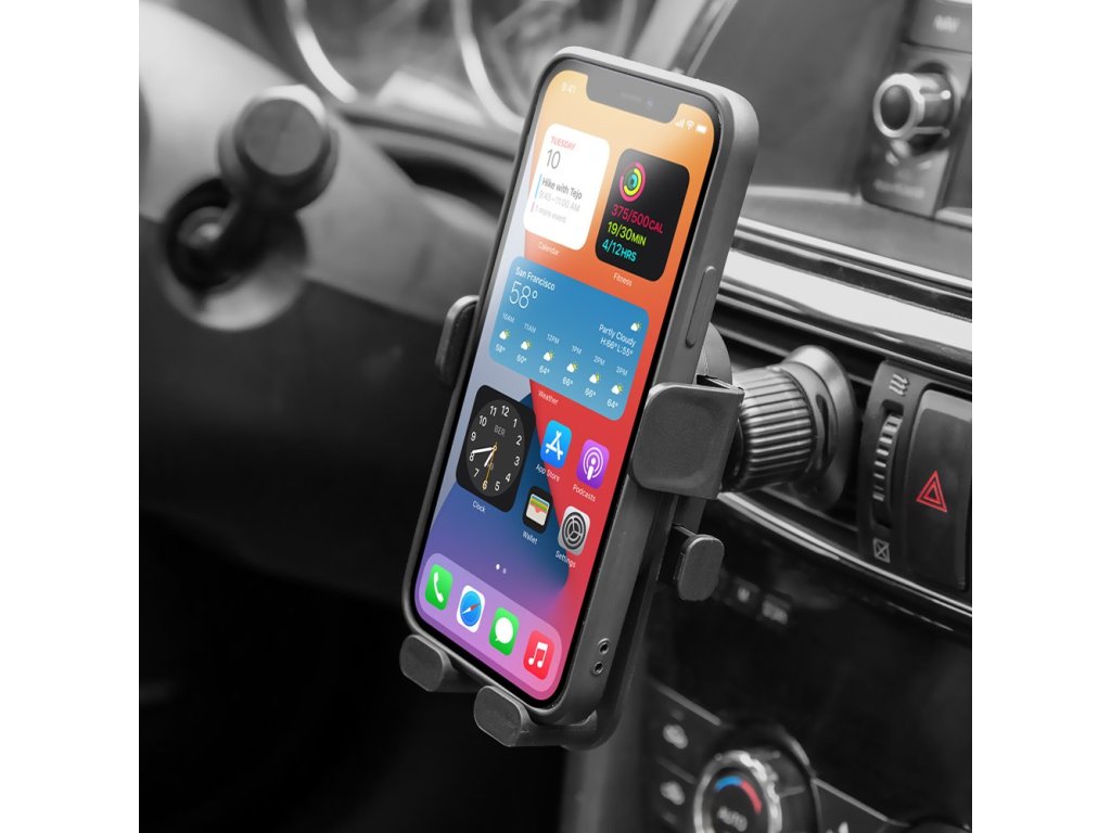 Zasazením GravGripperu do ventilační mřížky získáte stabilní, bezpečné a praktické umístění telefonu pro pohodlnou jízdu.
