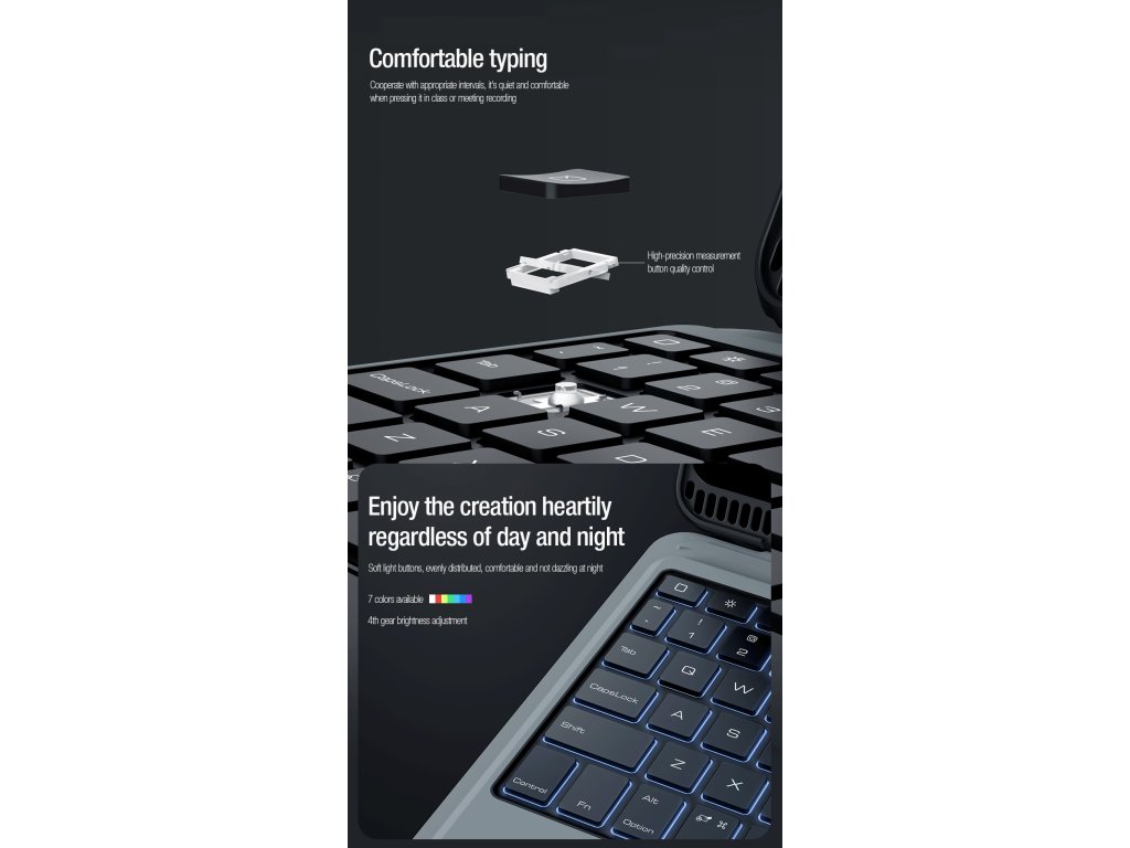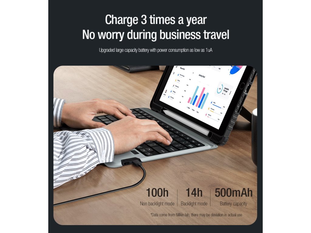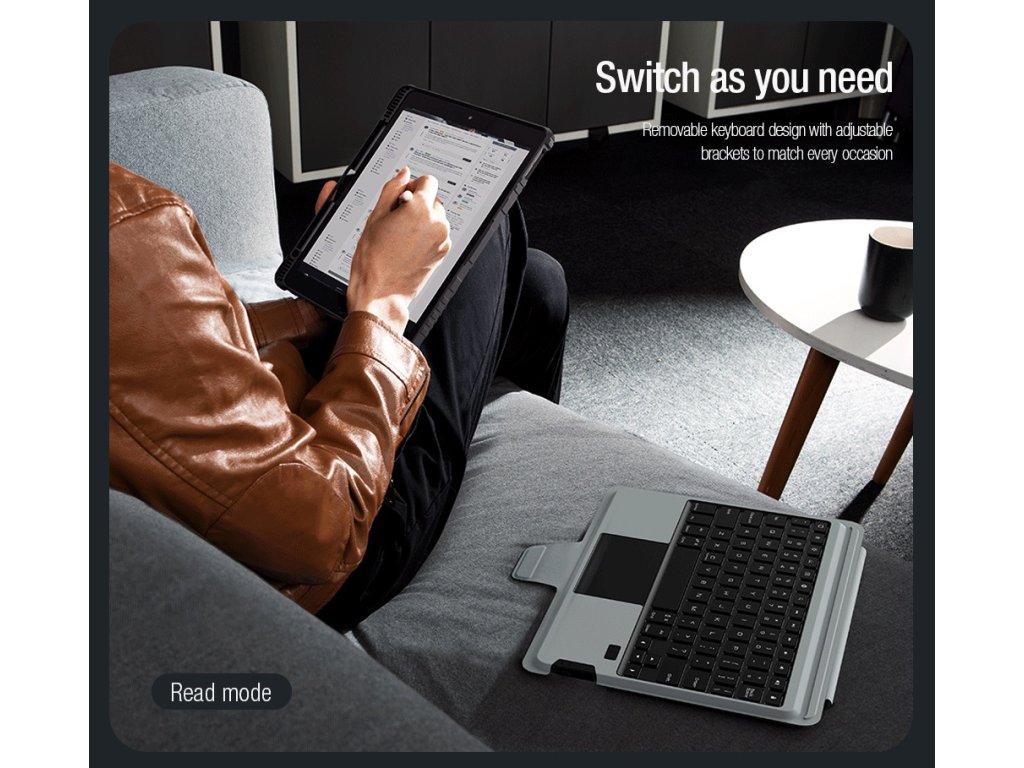 Nillkin Bumper Combo Keyboard Case je víceúčelový ochranný kryt tabletu s podsvícenou klávesnicí, slotem pro Apple Pencil s automatickým nabíjením a plynule nastavitelným úhlem tabletu.Chcete svůj tablet využívat jako mobilní kancelář, nebo jako náhradu za těžký notebook, nebo Vás prostě jen tablet baví, tak přesně pro Vás je zde ochranný kryt Nillkin Bumper Combo.