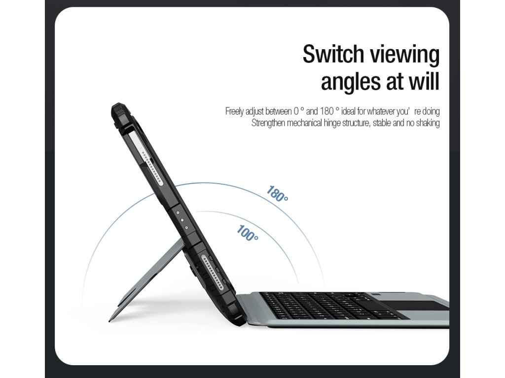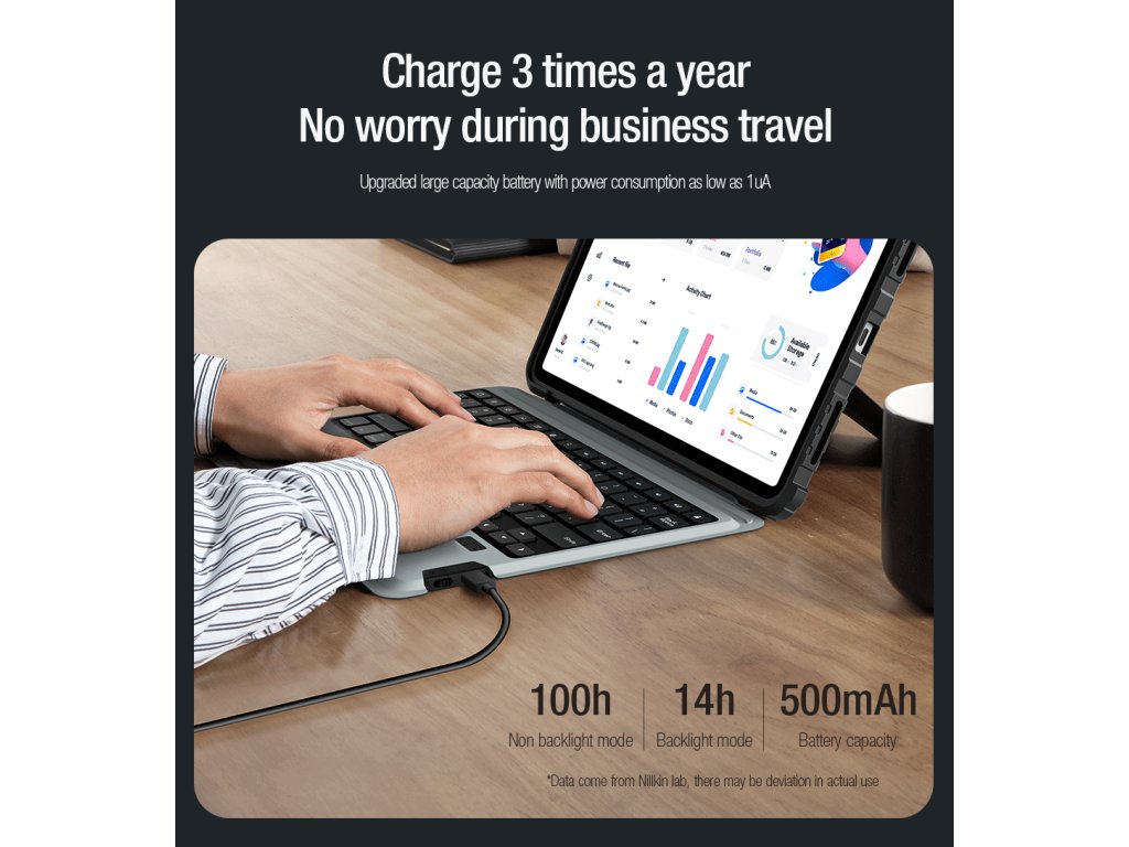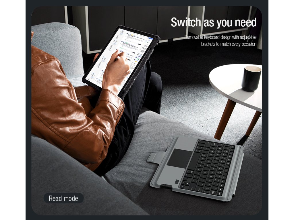 Nillkin Bumper Combo Keyboard Case je víceúčelový ochranný kryt tabletu s podsvícenou klávesnicí, slotem pro Apple Pencil s automatickým nabíjením a plynule nastavitelným úhlem tabletu.Chcete svůj tablet využívat jako mobilní kancelář, nebo jako náhradu za těžký notebook, nebo Vás prostě jen tablet baví, tak přesně pro Vás je zde ochranný kryt Nillkin Bumper Combo.