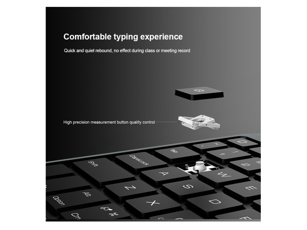Kryt vám nabídne špičkově zpracovanou odnímatelnou bezdrátovou klávesnici s nízkým zdvihem, tichými a odolnými spínači a precizní profilací kláves pro to nejpohodlnější psaní.