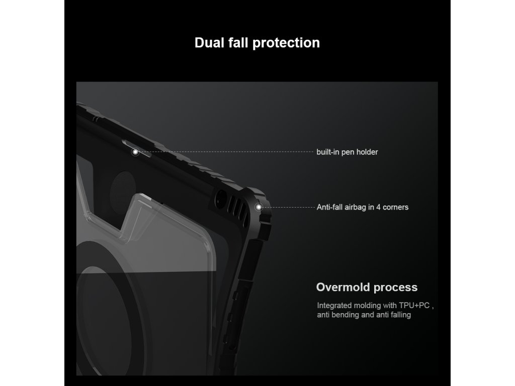 Kryt se skládá z TPU + PU materiálu, který chrání váš tablet před poškozením. Navíc je opatřen zesílenými rohy a posuvným krytem fotoaparátu pro ještě větší ochranu.