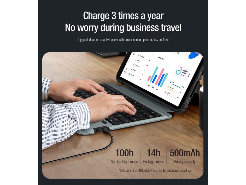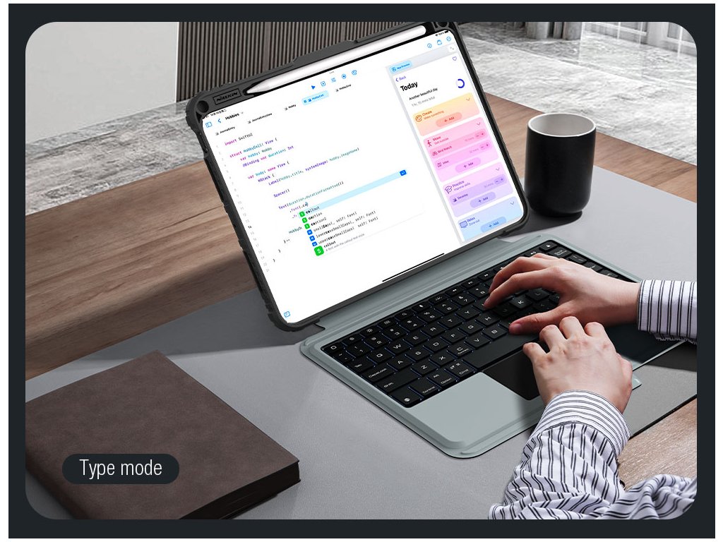 Nillkin Bumper Combo Keyboard Case je víceúčelový ochranný kryt tabletu s podsvícenou klávesnicí, slotem pro Apple Pencil s automatickým nabíjením a plynule nastavitelným úhlem tabletu.Chcete svůj tablet využívat jako mobilní kancelář, nebo jako náhradu za těžký notebook, nebo Vás prostě jen tablet baví, tak přesně pro Vás je zde ochranný kryt Nillkin Bumper Combo.