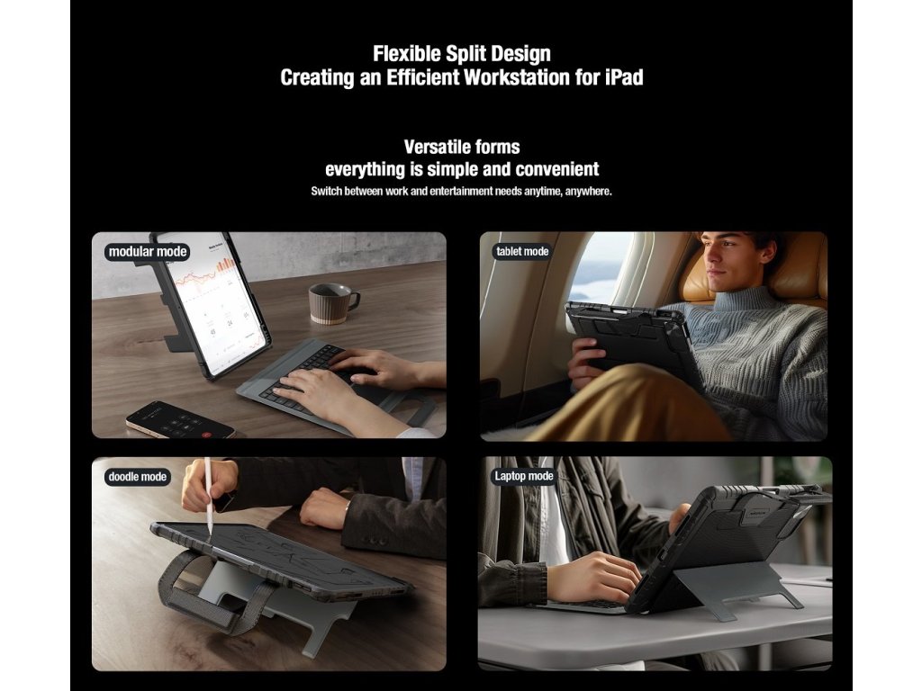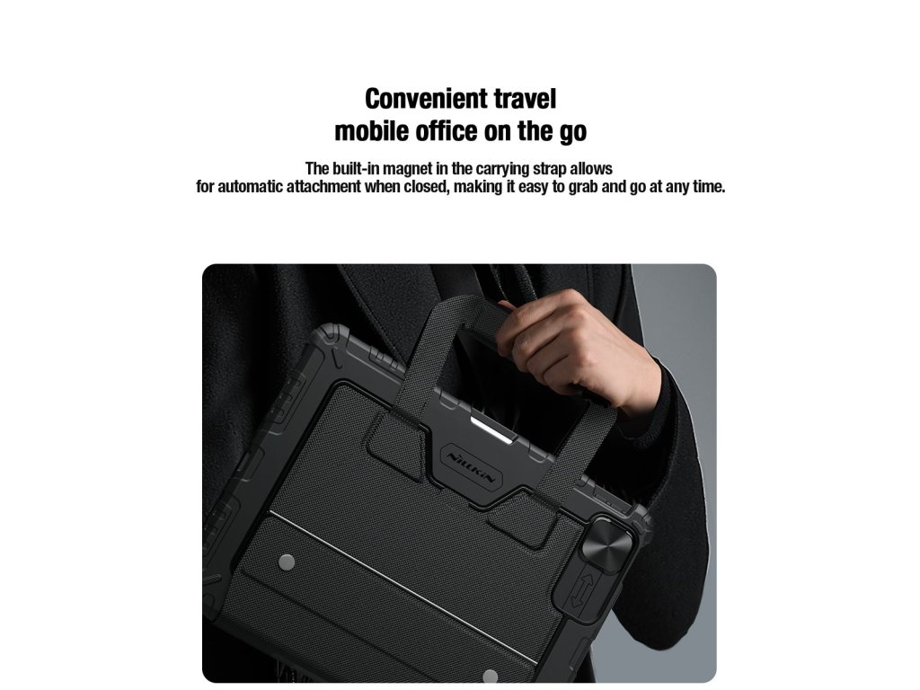 Nillkin Bumper Go Keyboard Case je víceúčelový ochranný kryt tabletu s odnímatelnou podsvícenou klávesnicí, slotem pro Apple Pencil a plynule nastavitelným úhlem tabletu.Chcete svůj tablet využívat jako mobilní kancelář, jako náhradu za těžký notebook, nebo vás prostě jen tablet baví? Tak přesně pro vás je zde víceúčelový ochranný kryt Nillkin.