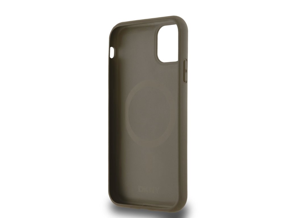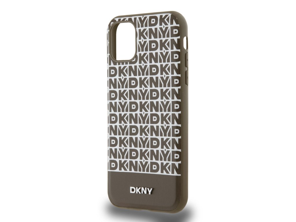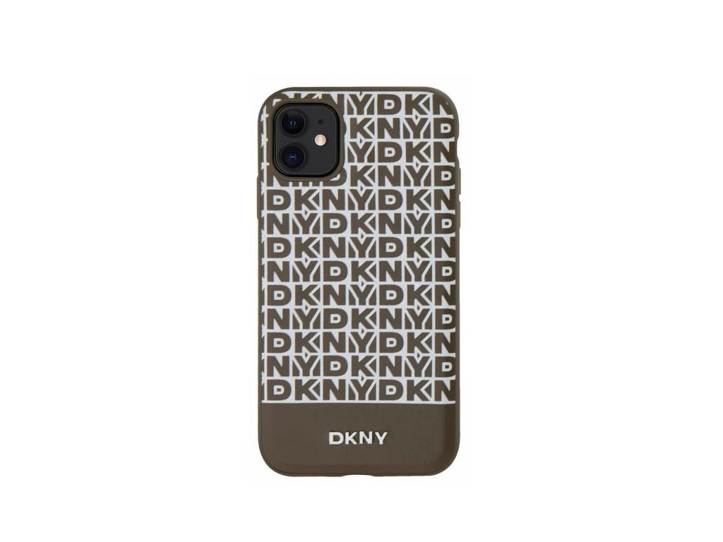 DKNY PU Leather Repeat Pattern Bottom Stripe MagSafe Zadní Kryt pro iPhone 11 Brown