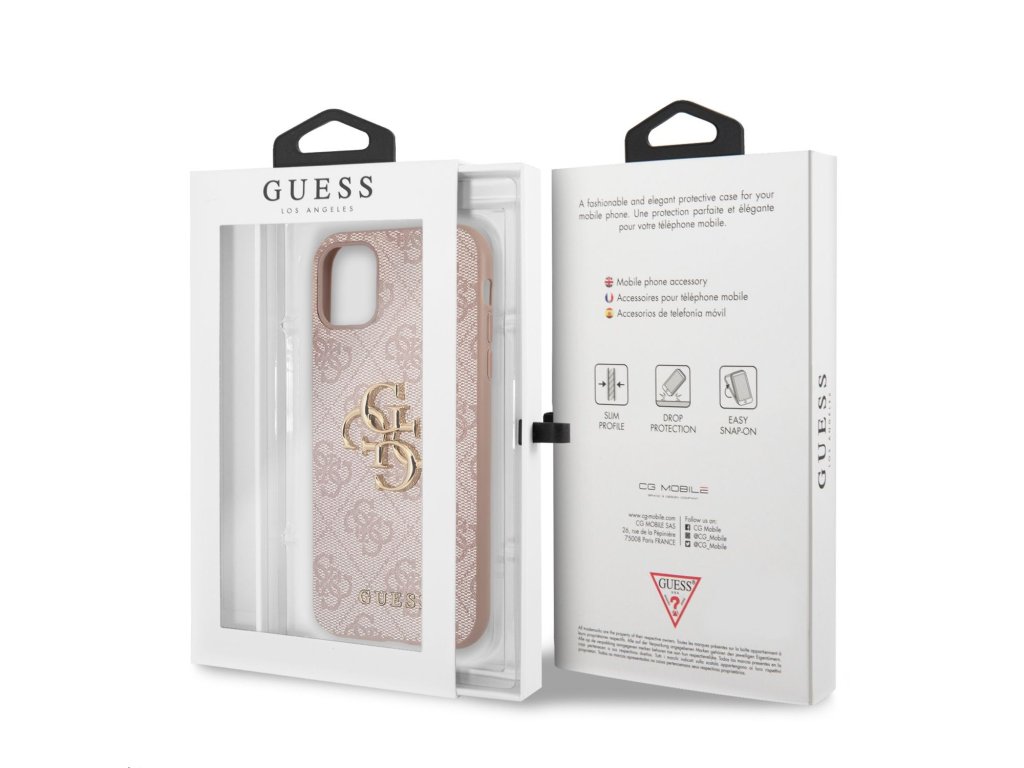 Guess PU 4G Metal Logo Zadní Kryt pro iPhone 11 Pink