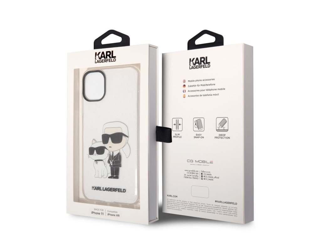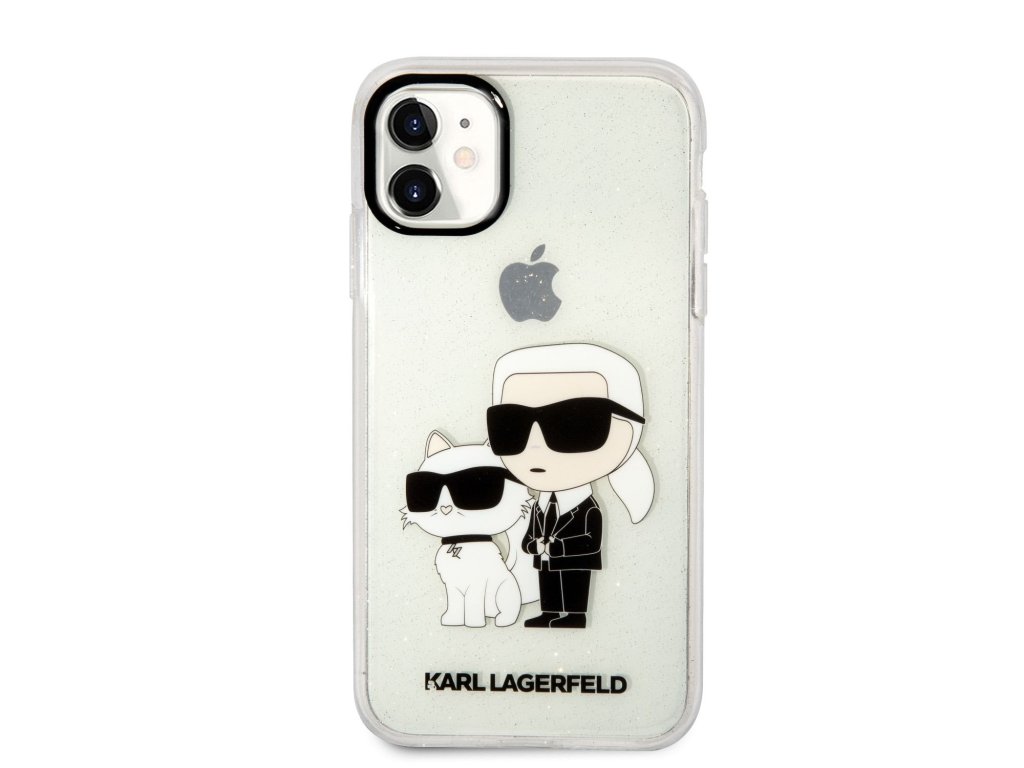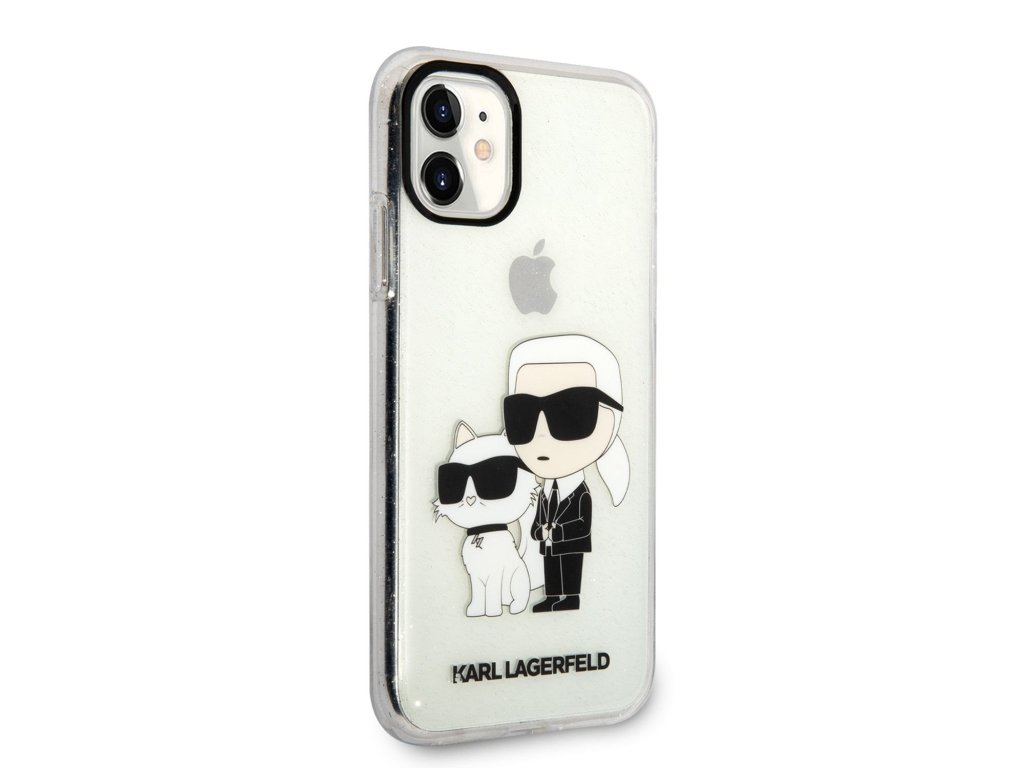 Karl Lagerfeld IML Glitter Karl and Choupette NFT Zadní Kryt pro iPhone 11 Transparent