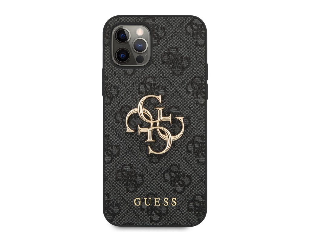 Guess PU 4G Metal Logo Zadní Kryt pro iPhone 12/12 Pro Grey