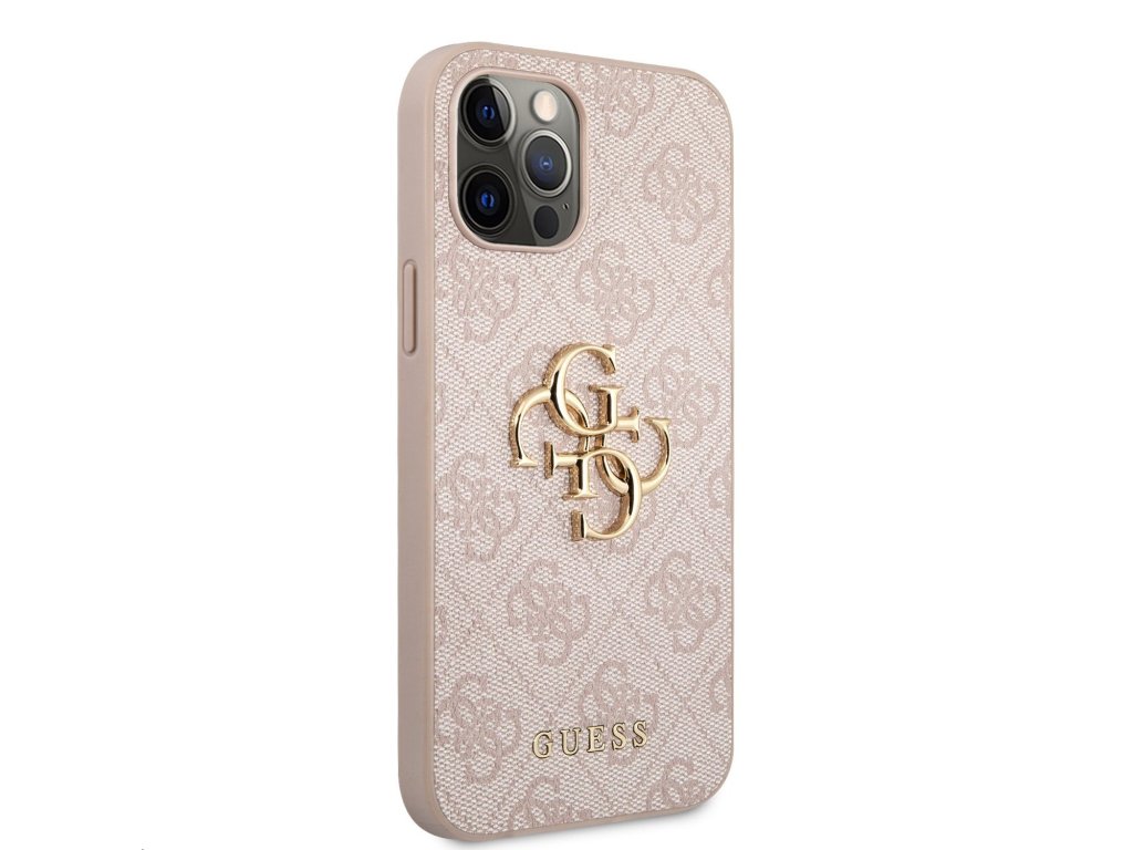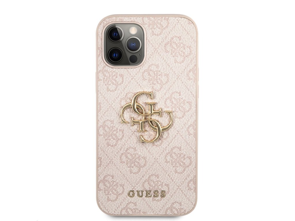 Guess PU 4G Metal Logo Zadní Kryt pro iPhone 12 Pro Max Pink