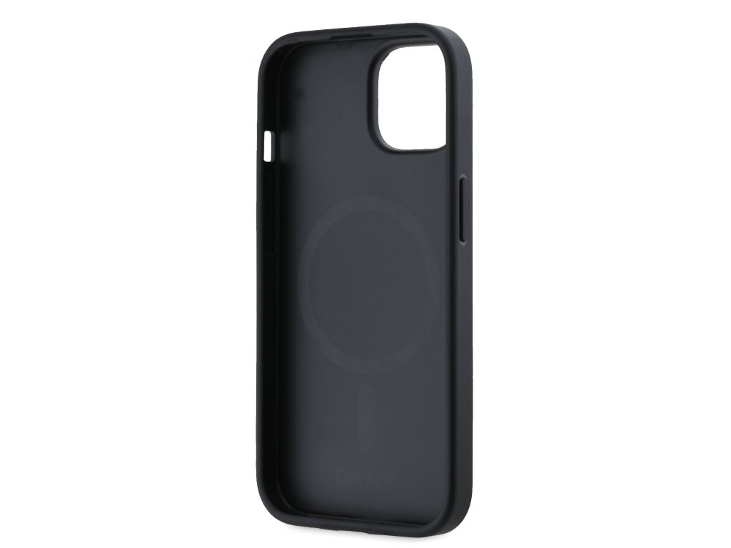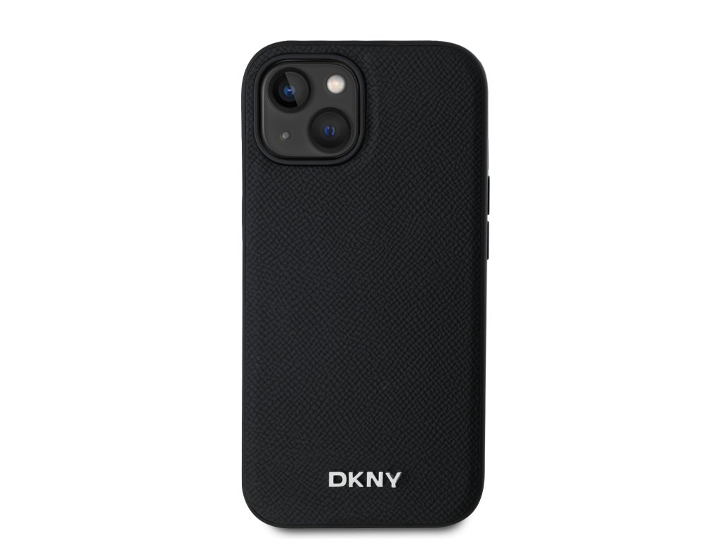DKNY PU Leather Silver Metal Logo Magsafe Zadní Kryt pro iPhone 13 Black